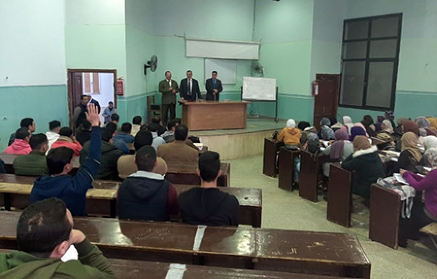 Prof.Dr.\ Hussein El Maghraby, the University Vice-president for Education and Students' Affairs has inspected faculty of Law at the 1st week of the 2nd semester. El Saeed was accompanied by Prof.Dr.\Reda Abd El Halim, Faculty of Law dean, deputies of the Faculty and Faculty members' staff. El Maghraby checked lectures' halls, maintenance works and listened to students opinions and complains and assured on keeping in touch with students. El Maghraby encouraged students to participate at activities and do their best to get the best results.